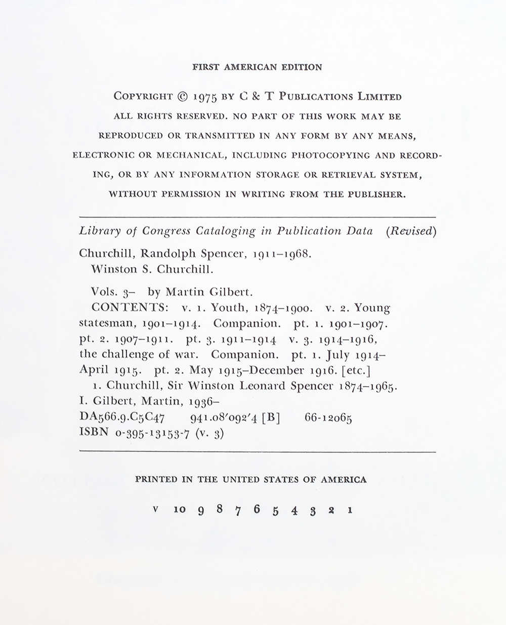 First American edition of the fourth volume in the official multi-volume biography of Winston S. Churchill