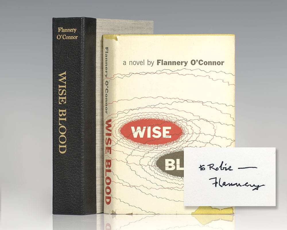 First edition of O'Connor's powerful first novel. Octavo, original cloth. Association copy, inscribed by the author on the front free endpaper to her editor, "For Robie --- Flannery." Robie Macauley was an American editor, novelist and critic whose literary career spanned more than 50 years. In 1966, Macauley became the Fiction Editor at Playboy where he published fiction by Saul Bellow, Roald Dahl, Nadine Gordimer, John Irving, Doris Lessing, Vladimir Nabokov, and Kurt Vonnegut among many others. In 1978 he became a Senior Editor at Houghton Mifflin where he was responsible for publishing The Mosquito Coast, The Marrakesh One-Two, Shoeless Joe, and several works of nonfiction. Near fine in a good first issue dust jacket with some wear to the front panel and crown of the spine. Housed in a custom half morocco clamshell box. An exceptional association.