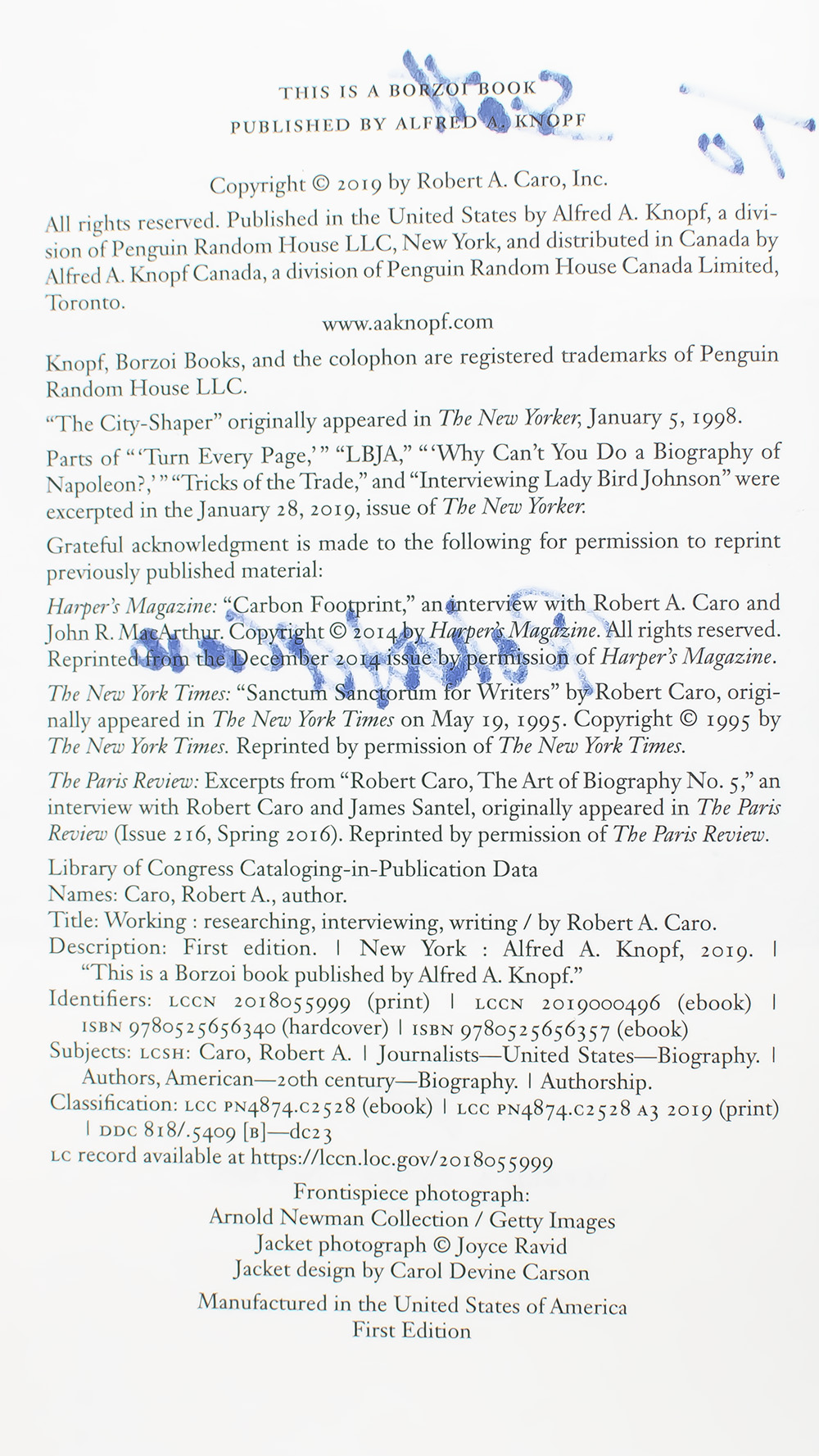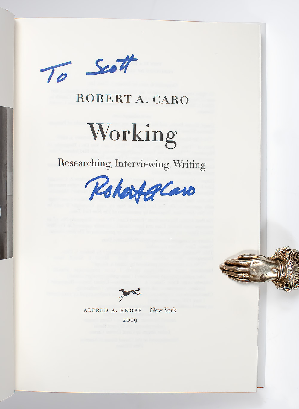 First edition of Working: Researching, Interviewing, Writing; Inscribed by two-time Pulitzer Prize-winning biographer Robert Caro