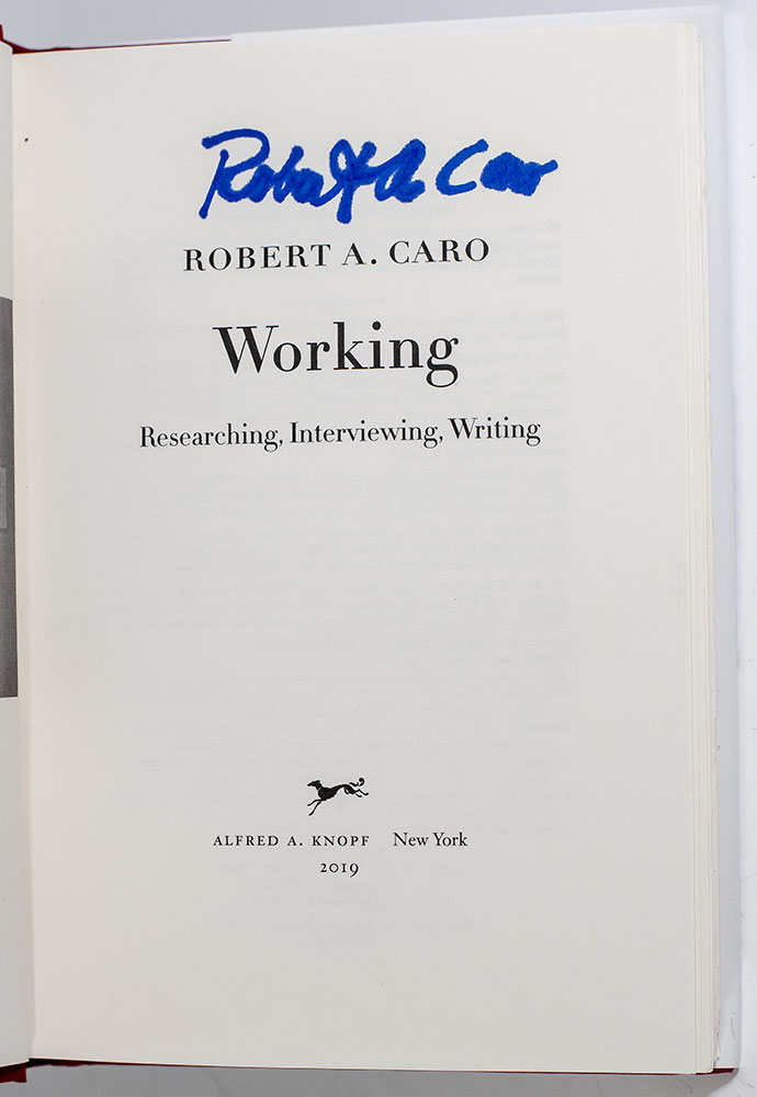 First edition of Caro's memoir. Octavo, original half cloth, pictorial endpapers. Signed by Robert Caro on the title page. Near fine in a near fine dust jacket. Jacket design by Carol Devine Carson.