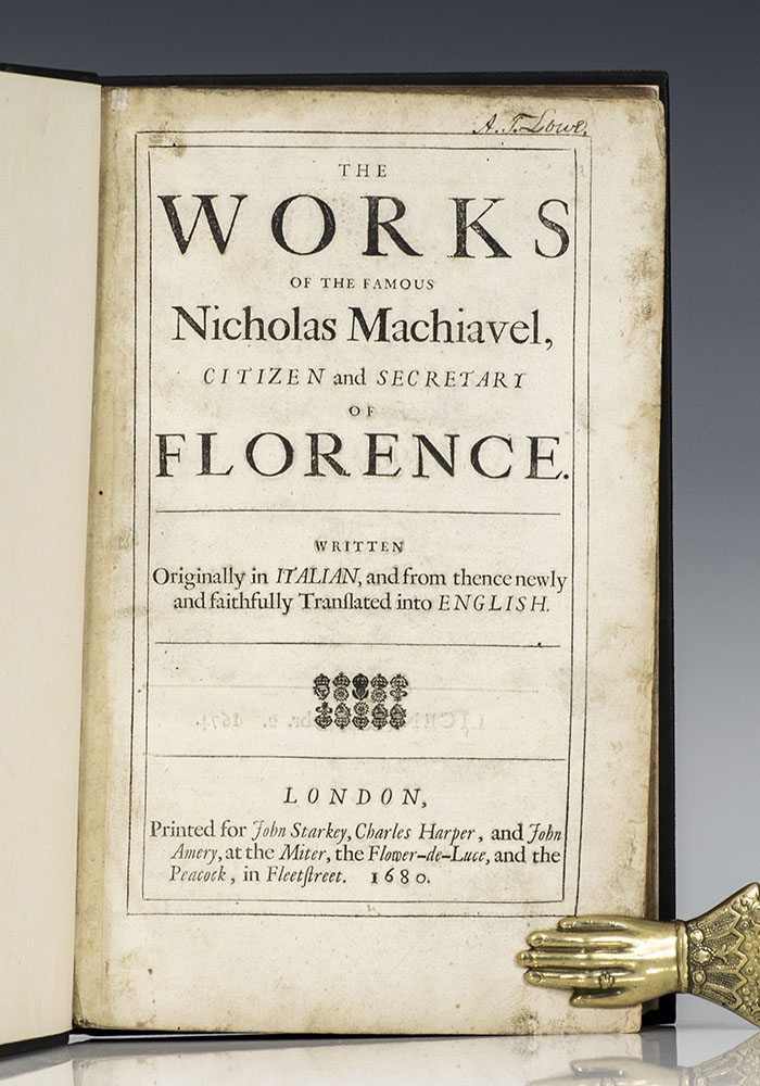 The Works of the Famous Nicholas Machiavel, Citizen and Secretary of Florence. Written originally in Italian, and from thence newly and faithfully translated into English.