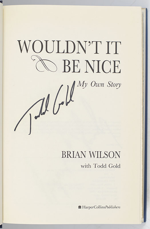 First Edition of Brian Wilson's Wouldn't It Be Nice: My Own Story; inscribed by him, Todd Gold, and Dr. Eugene Landy