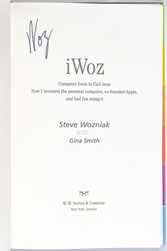 First edition of this work which "traces the life and times of a brilliant, gifted...individual whose contributions to the scientific, business and cultural realms are extensive" (Bookpage). Octavo, original boards, illustrated. Signed by Steve Wozniak on the title page. Fine in a fine dust jacket. Written with Gina Smith.