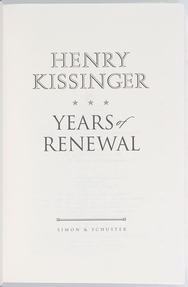 First edition of Henry Kissinger's Years of Renewal; Signed by Him