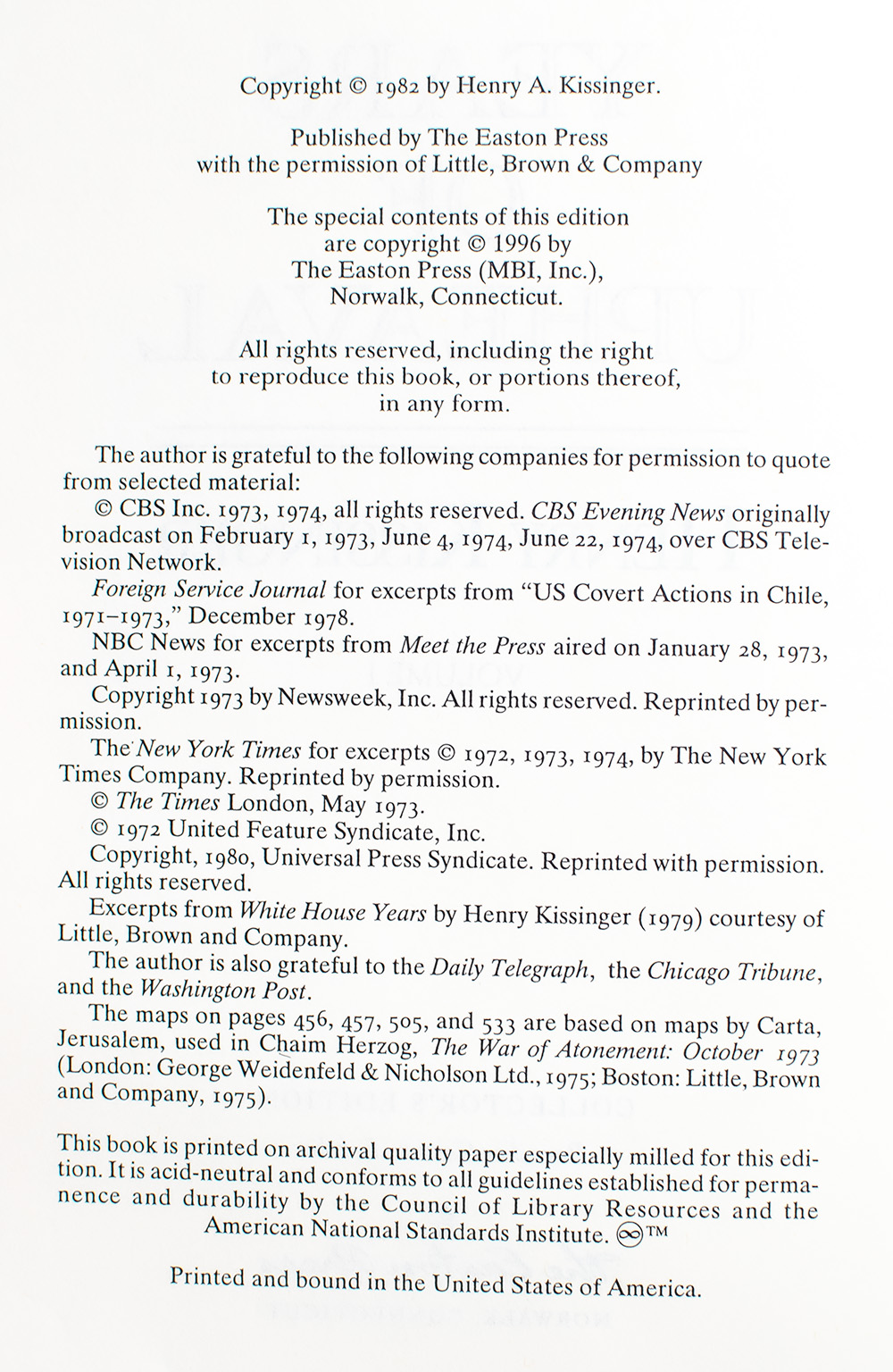 The Easton Press' Collector's Edition of Henry Kissinger's Years of Upheaval