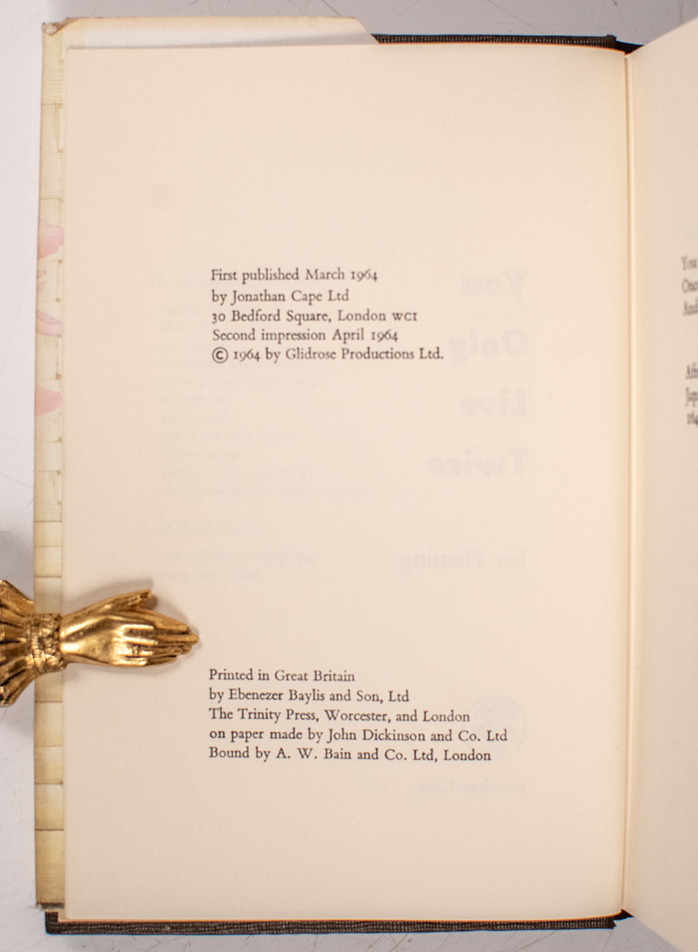 "You only live twice: Once when you're born And once when you look death in the face": First Edition of Ian Fleming's You Only Live Twice; Signed by British Author Roald Dahl