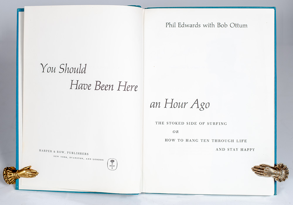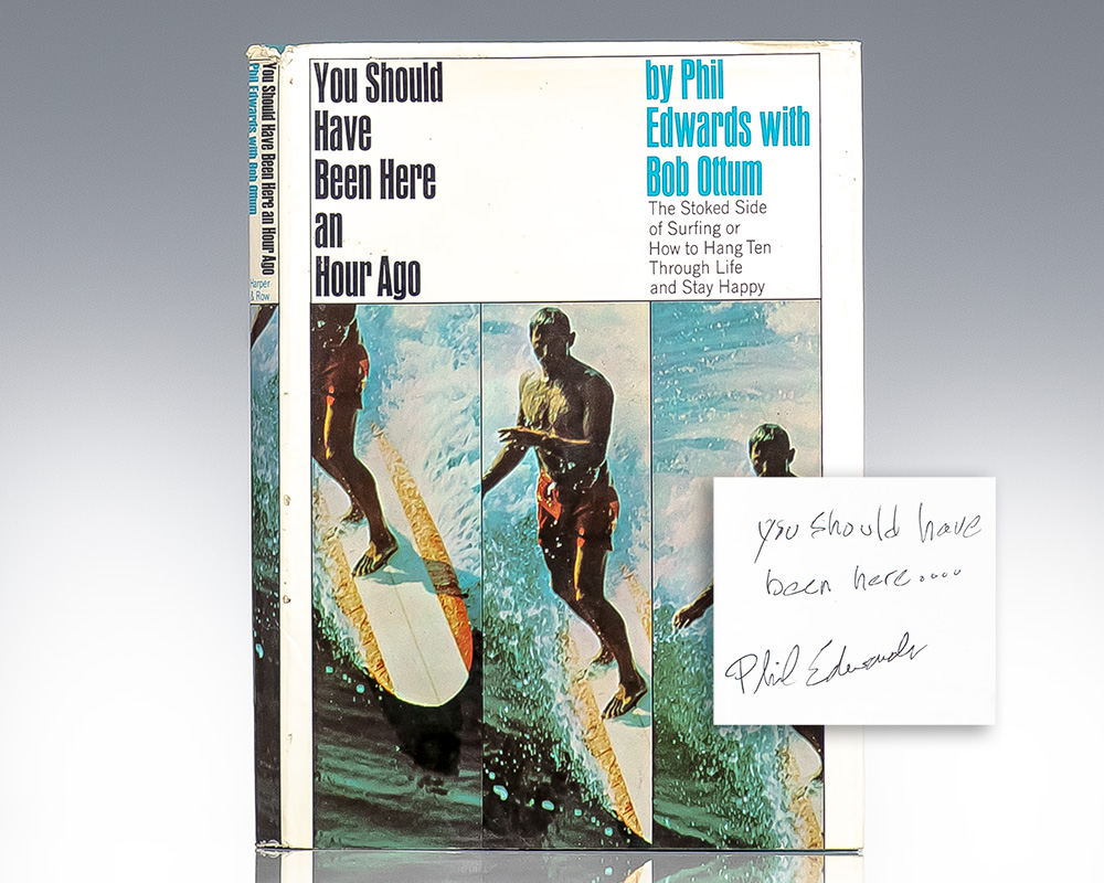 "Waves can't be the god of the sport ... It has to be getting out in it that counts": First Edition of You Should Have Been Here An Hour Ago; Inscribed by Phil Edwards