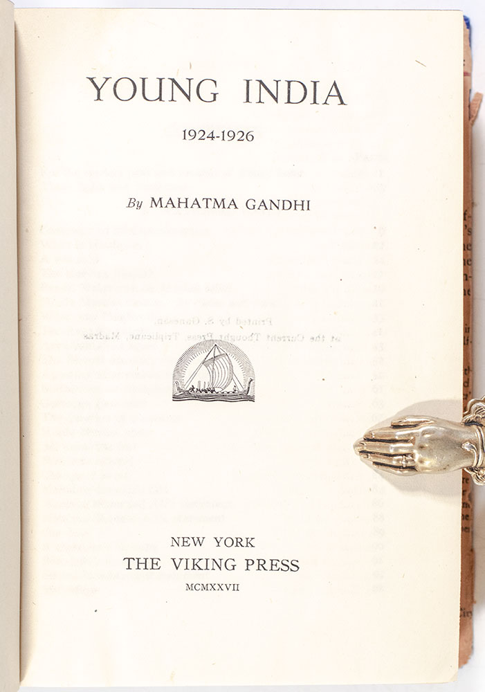 First edition of the second series of the writings of Gandhi. Octavo, original cloth with gilt titles to the spine and front panel. Gandhi founded and published the weekly periodical in English, Young India, from 1919 to 1931 to spread the philosophy and principles of the Satyagraha Movement and urge readers to participate in it. Near fine in the rare original dust jacket with chips and wear, name to the front pastedown.