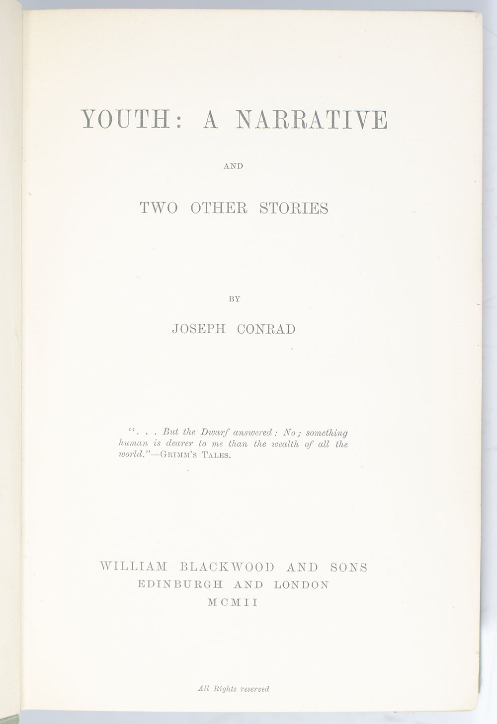 “But his soul was mad. Being alone in the wilderness, it had looked within itself": First Edition of Joseph Conrad's Youth