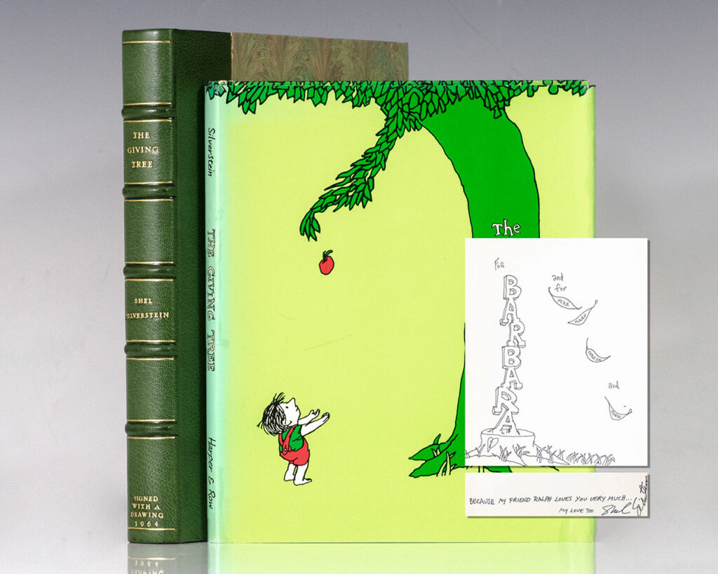 Throughout the picture book, the boy benefits at all stages of life from the tree’s gifts with little regard for the tree’s well-being in return. This relationship has been interpreted as a representation of the relationship between man and nature, mother and child, and as the “Christian ideal of unconditional love” (Leonard, 2005). Silverstein’s original manuscript of The Giving Tree consisted of 38 pasteboard pages with Silverstein’s original ink drawings on paper adhered to each page and Silverstein’s original handwritten text.