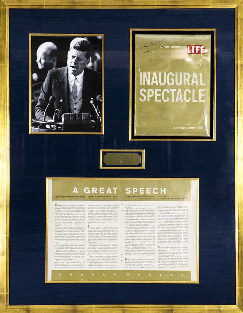 Life Magazine’s souvenir edition commemorating Kennedy’s inauguration; inscribed by President Kennedy,