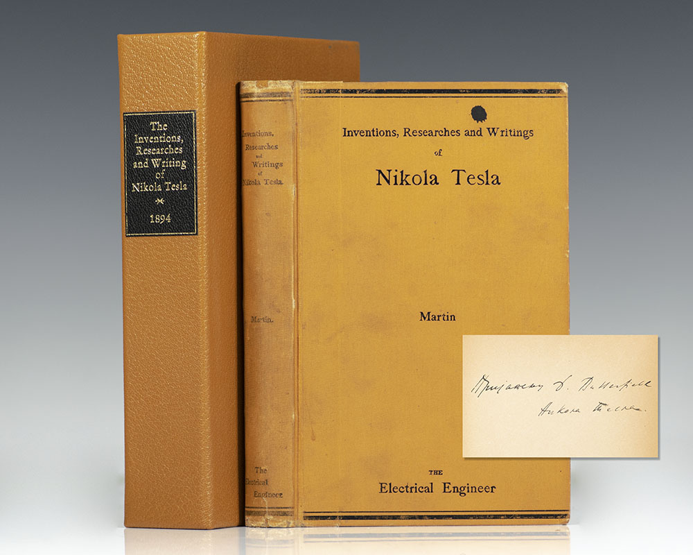 The Inventions, Researches and Writings of Nikola Tesla; inscribed by Nikola Tesla to Civil War Major and Assistant U.S. Treasurer General Daniel Butterfield