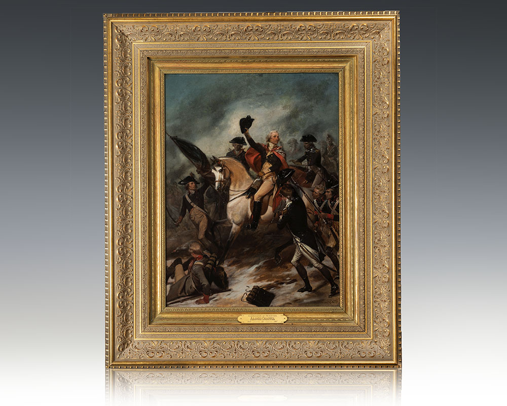 Alonzo Chappel’s famed painting of Commander-in-Chief George Washington rallying the Continental Army at the Battle of Princeton; signed by the artist