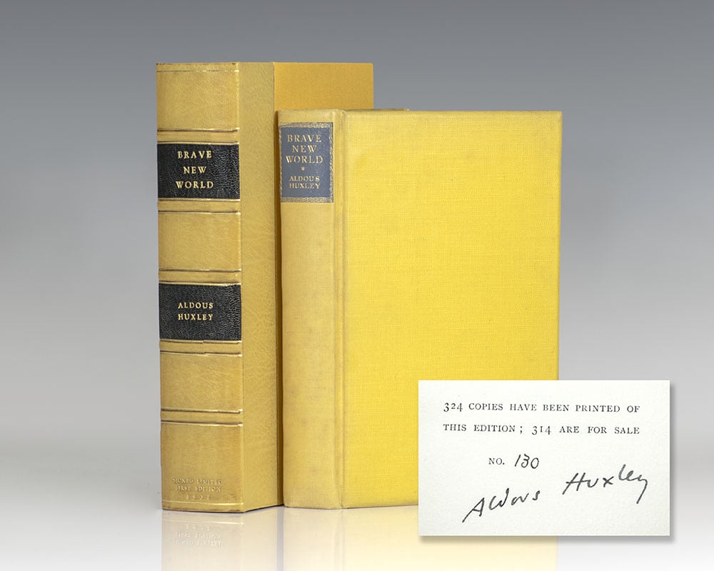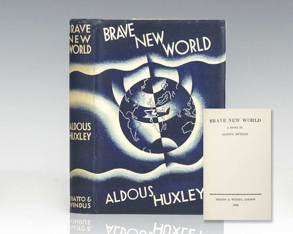 First published in 1932, Huxley’s fifth novel which is widely regarded as his masterpiece, Brave New World, was written largely in response to H.G. Wells’ Utopian novels of the early 20th century. Set in London in the year 2540, the novel anticipated future developments in psychological manipulation and reproductive technology which created a profound shift in the character of society.